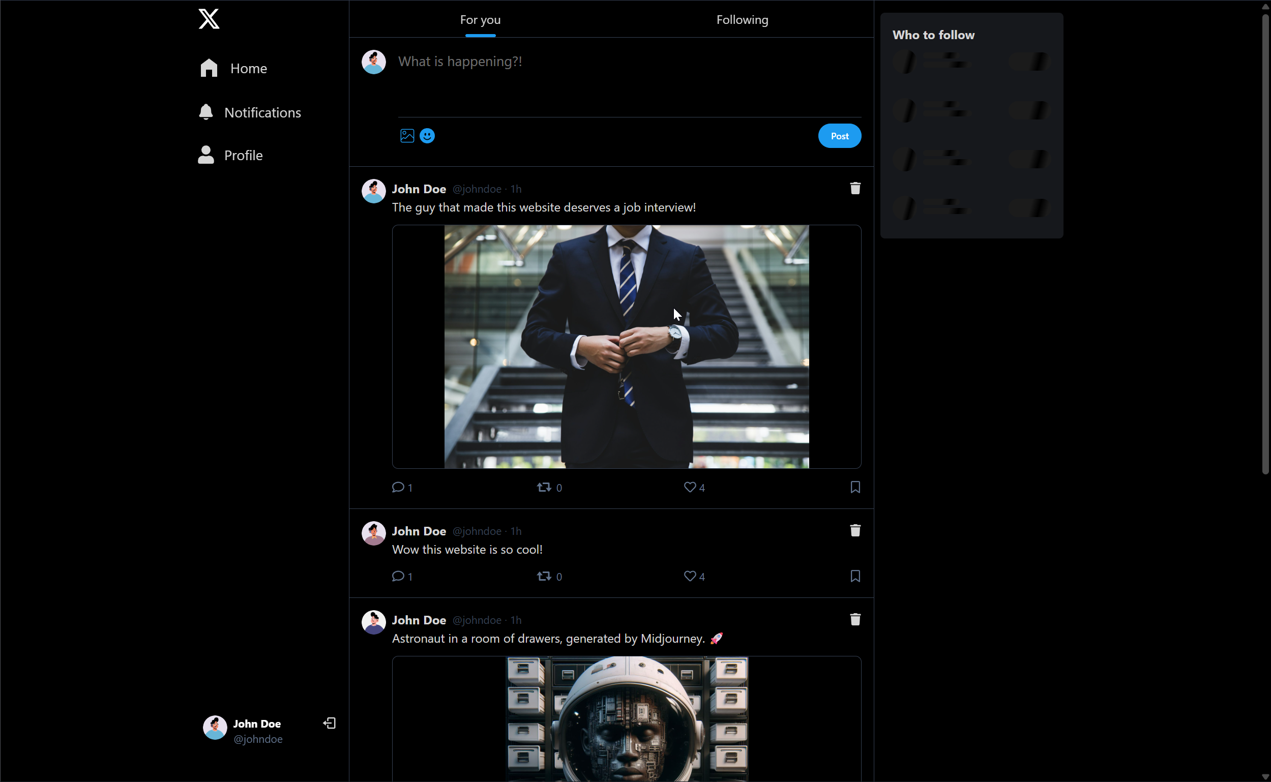 A fullstack Twitter clone web application with user authentication, encryption, and working tweet, like, following and notification systems